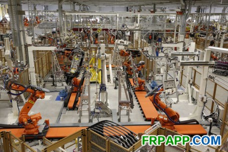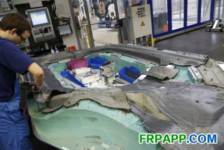 在樹脂傳遞成型階段之后,利用水激光切割技術(shù)完成碳纖維增強復(fù)合材料部件上的嵌入空和邊緣剪裁加工;接著在最新的全自動化車身車間中,所有部件進行過表面磨砂處理,增加粘附性后,結(jié)合為一個穩(wěn)固整體。