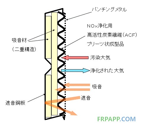 實(shí)現(xiàn)吸音并吸收有害氣體的關(guān)鍵在于采用了活性碳素纖維材料。活性碳材料對有毒物質(zhì)的吸收凈化功能早已人所共知,在凈水器濾芯中有著廣泛的應(yīng)用。此次大阪ガス株式會社通過研究進(jìn)一步強(qiáng)化了這一功能,開發(fā)出了能吸收空氣中70%氮氧化物的高活性碳素纖維(ACF)。該產(chǎn)品經(jīng)中國清華大學(xué)等高校實(shí)驗驗證,已經(jīng)應(yīng)用于大阪府內(nèi)43號國道和東京都板橋區(qū)的道路施工。