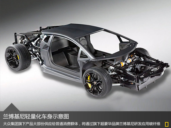 隨著科技水平不斷提高,車身輕量化也開始普及。包括碳纖維、鋁合金等材料被大量應用,其中碳纖維兼顧超輕質量同時還擁有很高的耐磨和延展性。但由于碳纖維材料造價較高目前大部分都被應用在賽車上。在碳纖維的應用上豪華品牌寶馬已走在前列,其率先將碳纖維應用到旗下新能源車系i3和i8上(全碳纖維車身),而新M3、M4等M產品以及下一代旗艦轎車7系和下一代X5在生產中也同樣會應用碳纖維材料。相比之下大眾集團旗下產品大部供應給普通消費群體,選擇集團下超豪華品牌蘭博基尼研發應用碳纖維也成為必然性。