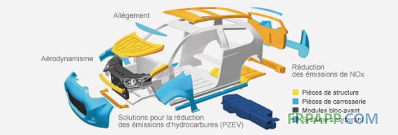 熱塑性塑料工藝不僅讓形狀更符合空氣動力學的設計并且設計更靈活,還在輕量化的同時更降低風阻,進一步降低了燃油消耗和尾氣排放,保險杠蒙皮上的進氣口經過優化后可配備空氣調節閥,在引擎不需要降溫時啟用(相當于每公里減排1g二氧化碳)。全耐塑料所特有的基于高性能合成材料的半結構和結構式部件更能優化減輕車輛負荷。