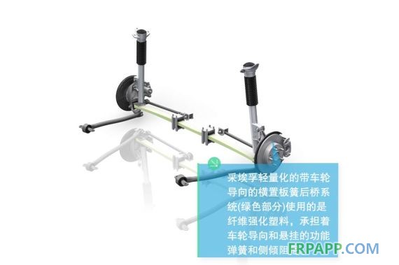 帶車輪導向的橫置板簧車橋系統不僅大大降低了整車制造廠商安裝車橋的難度,減小了安裝空間,更重要的是,較少的零件數量和極輕的玻璃鋼材質意味著更輕的重量。