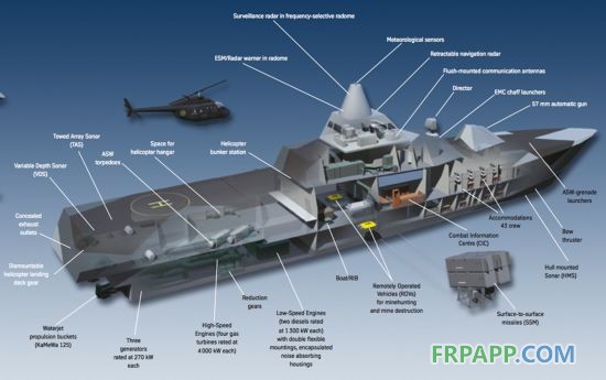 該級艦將快速攻擊艇和高速巡邏艇的功能與反潛戰(zhàn)艦艇和反水雷戰(zhàn)艦艇的功能巧妙地融合在一起,是一種具有低空防御能力的多用途艦艇。艦上將配備8枚RBS 15 MKⅡ型艦對艦導彈、一門博福斯公司SAK MK 3 型57毫米炮、4具400毫米43/45型反潛魚雷發(fā)射管、射程可達1200米的Saab公司的601型127毫米反潛深水炸彈發(fā)射炮以及各種先進的探測系統(tǒng)、作戰(zhàn)指揮系統(tǒng)和通信系統(tǒng),可執(zhí)行各種反水雷戰(zhàn)、反潛戰(zhàn)、布雷、水面作戰(zhàn)、水下防御和防空使命。艦上還將配備一架直升機,直升機可在艦上起降和加油。另外,在艦上還可配備一個臨時機庫。