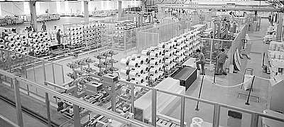 山東泰山玻璃纖維有限公司擁有國內首條萬噸級無堿玻纖池窯拉絲生產線,年產玻纖及制品42萬噸,是全球五大、中國三大玻璃纖維制造企業之一。公司主導產品為無堿玻纖無捻粗紗系列、短切氈、方格布等,廣泛應用于建筑、交通運輸、電子電器、航空航天等國民經濟各領域,并遠銷美國、歐盟、加拿大、中東、南非等60多個國家和地區。圖為該公司包裝車間作業環節。