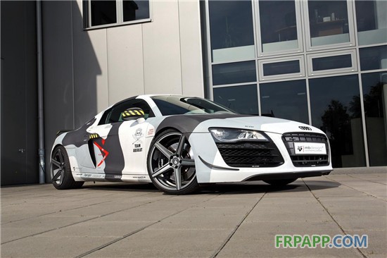 mbDESIGN為這部奧迪R8 V8版本準備了迷彩風格的外觀涂裝,不禁讓人想起了之前Jon Olsson打造的那部奧迪RS6 Avant藝術車,不過這臺R8名車上的花紋風格源自于F16 Arctic Aggressor戰斗機。改裝后的車型配備了GT避震套件,讓整車高度有所下降,加上20英寸合金輪轂,和鄧祿普Sport Maxx GT前235/20 ZR20,后305/25 ZR20輪胎,讓其視覺效果更加霸氣凜然。