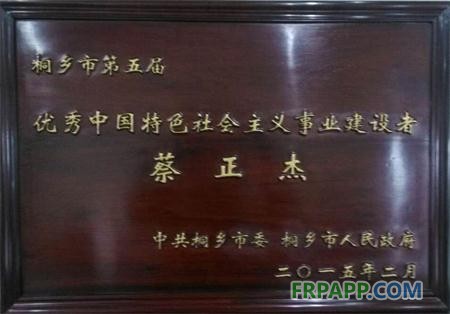 核心提示:蔡正杰榮獲“桐鄉市第五屆優秀中國特色社會主義事業建設者”殊榮
