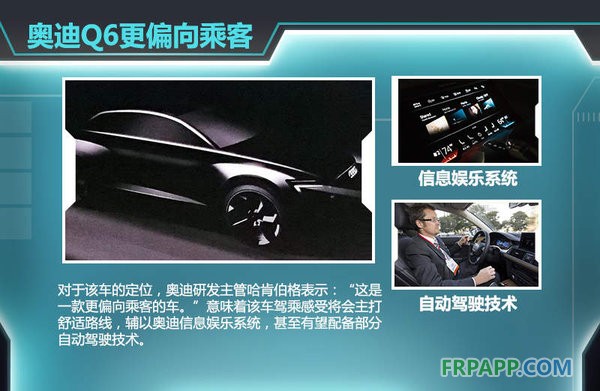 由于這款全新的奧迪Q6e-tron的底盤來(lái)自Q7,車身尺寸上也不會(huì)有太大出入,上市后競(jìng)爭(zhēng)對(duì)手鎖定為特斯拉Model X,同級(jí)對(duì)手還將有寶馬X6以及奔馳GLE Coupe。對(duì)于該車的定位,奧迪技術(shù)研發(fā)主管哈肯伯格表示:“這是一款更偏向乘客的車。”意味著該車駕乘感受將會(huì)主打舒適路線,輔以?shī)W迪信息娛樂(lè)系統(tǒng),甚至有望配備部分自動(dòng)駕駛技術(shù)。目前奧迪自動(dòng)駕駛技術(shù)主要基于車頭與車尾的14處超聲波傳感器以及兩塊激光測(cè)距儀,這些裝置每秒發(fā)射10萬(wàn)次激光信號(hào)并通過(guò)反射繪制實(shí)時(shí)駕駛環(huán)境模型,由電腦分析并選擇行駛路線。