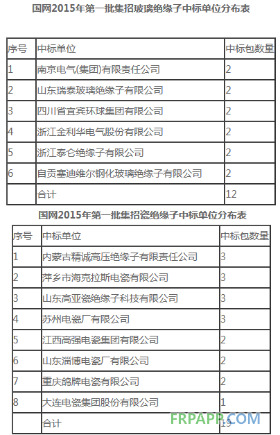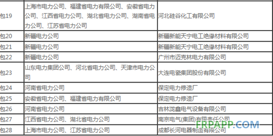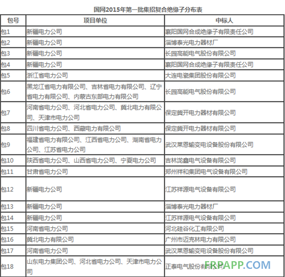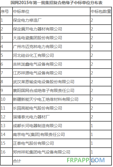 國家電網公司2015年輸電線路材料復合絕緣子第一批集中招標共28個包,16家供應商中標,其中12家企業各中兩個包,4家企業各中一個包。