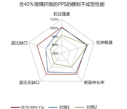 圖3. 含40 %玻璃纖維的PPS 的模制干成型性能。