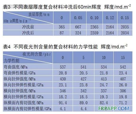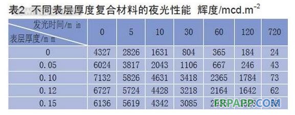★復合材料表層對夜光層有良好的保護作用,可防止拉擠成型時夜光劑受設備、模具的刮落、污染,同時還可防止雨水沖洗損失夜光劑,且表層厚度為0.10mm時較佳。
