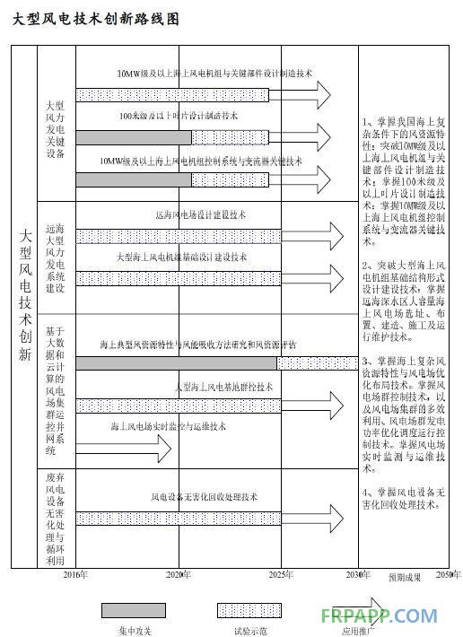 3.2050 年展望。突破30MW 級超大型風(fēng)電機組關(guān)鍵技術(shù),掌握不同海域規(guī)模化風(fēng)電開發(fā)成套技術(shù)與裝備,形成完整的風(fēng)能利用自主創(chuàng)新體系和產(chǎn)業(yè)體系,風(fēng)能成為我國主要能源之一。