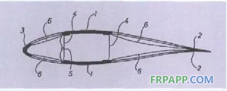(2)前后邊緣,除了提高剛度和降低質量外,還起到避免雷擊對葉片造成損傷(專利US6457943B1)的作用,如圖3中涂黑的部分采用碳纖維(專利 EP1485611)。