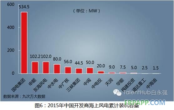 從大數據上看,截至2015年底,海上風電機組供應商共10家,累計裝機容量達到100MW以上的機組制造商有上海電氣、華銳風電、遠景能源、金風科技,這四家企業海上風電機組裝機量占海上風電裝機總量的86.6%。2015年,上海電氣的海上風電機組供應量最大,占海上風電裝機容量的83.2%;其次是湘電風能,海上風電吊裝容量占比為13.9%。