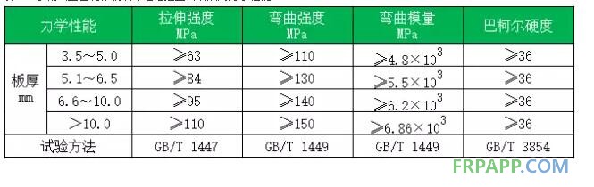 5.10 采用手糊法工藝制作的玻璃纖維增強塑料成品的力學性能保證值應符合表5.10的規定。
