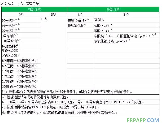 B.4.2 將性能檢驗試樣分別在表B.4.2中規定的A型外部介質中浸泡30d、90d、180d、270d,B型外部介質中浸泡30d、90d、180d,浸泡期間試驗溶液溫度應保持38°C。