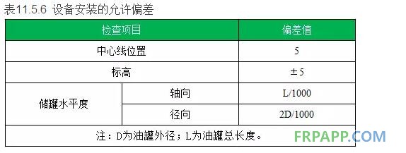 11.5.6 油罐的安裝應符合GB50461的有關規定。安裝允許偏差應符合表11.5.6的規定。