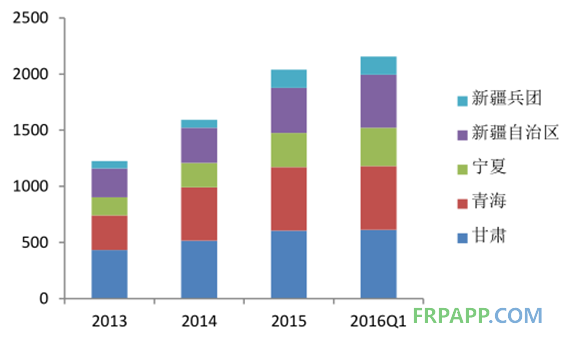 一方面,在我國(guó)火電為主的能源結(jié)構(gòu)中,過(guò)去火電存量很大,新能源在電源結(jié)構(gòu)中占比較小。隨著國(guó)家大力發(fā)展新能源,光伏和風(fēng)電裝機(jī)量在過(guò)去幾年呈井噴式高速增長(zhǎng)。增量新能源裝機(jī)過(guò)去主要集中分布在西北等風(fēng)光資源豐富地區(qū),但部分地區(qū)新能源裝機(jī)快速增長(zhǎng)的同時(shí)留下了大面積限電的隱患。西北地區(qū)的年累計(jì)裝機(jī)量不斷增加,從 2014年到 2016 年一季度由 1,224 萬(wàn)千瓦增加至 2,156 萬(wàn)千瓦,增幅達(dá)到 76%。由于棄光量近兩年來(lái)始終居高不下,大部分限電省市今年開(kāi)始有序限制新增增量新能源裝機(jī)(也包括區(qū)域內(nèi)其他種類(lèi)電力裝機(jī))。2016 年一季度,主要限電地區(qū)新增裝機(jī)量占全國(guó)裝機(jī)量的比例由 2015 年的 36%下降至 17%。
