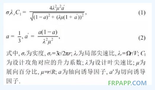 目前的葉片氣動設計方法有兩大類, 一類是解析方法, 一類是數值方法. 其中解析方法主要是根據動量葉素理論, 即BEM理論, 直接推導得到. 在不考慮阻力損失和葉尖損失的條件下, 根據BEM 理論可以得到葉片的最優氣動外形滿足如下方程: