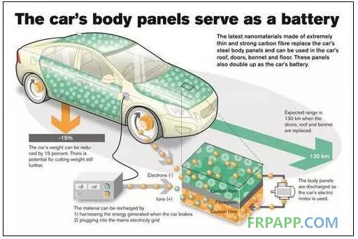 眾所周知,碳纖維是汽車輕量化發展過程中非常重要的材料,碳纖維復合材料的應用可使汽車車身、底盤減輕重量40~60%,相當于鋼結構重量的1/3~1/6。而近期沃爾沃的一項黑科技更是顛覆了我們的認知,沃爾沃已成功研發出能儲存電能的碳纖維材料。這種材料能夠取代傳統車輛的金屬車體,從車門、車頂到引擎蓋等都可以。