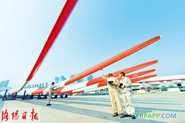 核心提示:近日,在中船重工第七二五研究所洛陽雙瑞風電葉片有限公司,技術人員在對一批新型復合材料風力發電葉片進行出廠前檢測。