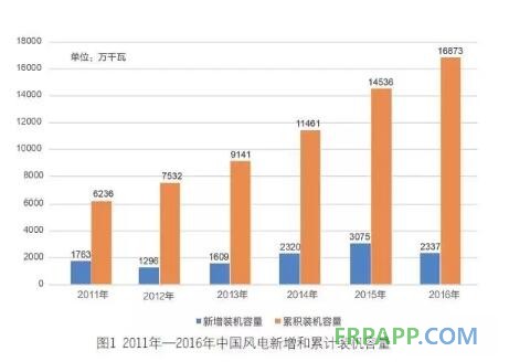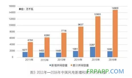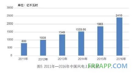 與此相比,風電上網電量在2016年也再創新高,達到2410億千瓦時,同比增長29.4%。與全國總電量類似,這一增幅也位居同期的第三高位。