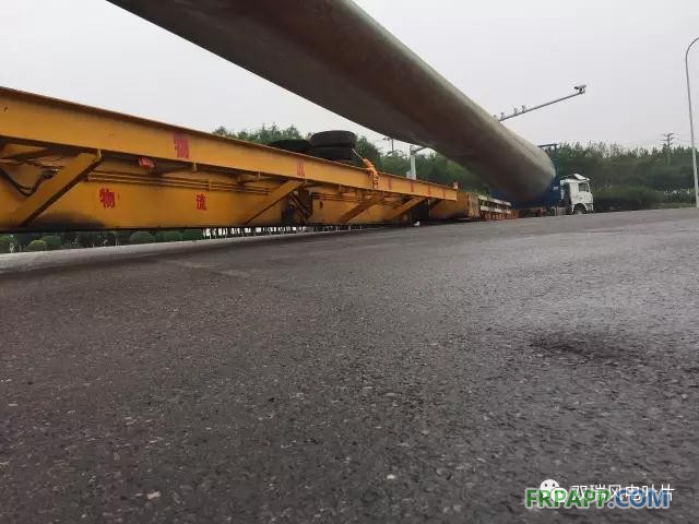 雙瑞風電5MW首支葉片成功下線后,于6月13日出發,歷經11個日日夜夜和水路、陸路總計1700公里的行程,在6月24日凌晨到達風能檢測中心。