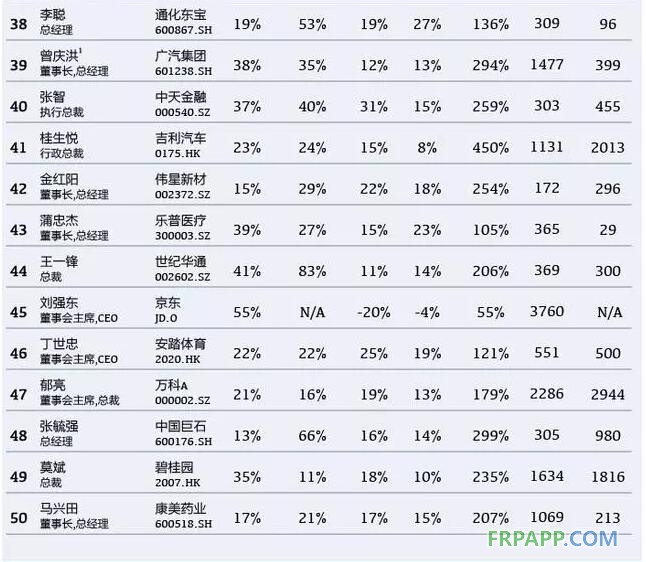 50位最佳CEO所管理的上市公司中,有37家在內地上市,8家在香港上市,5家在美國上市,平均市值1390億元。而他們最近三年從上市公司領取的總薪酬的平均值為1290萬元。
