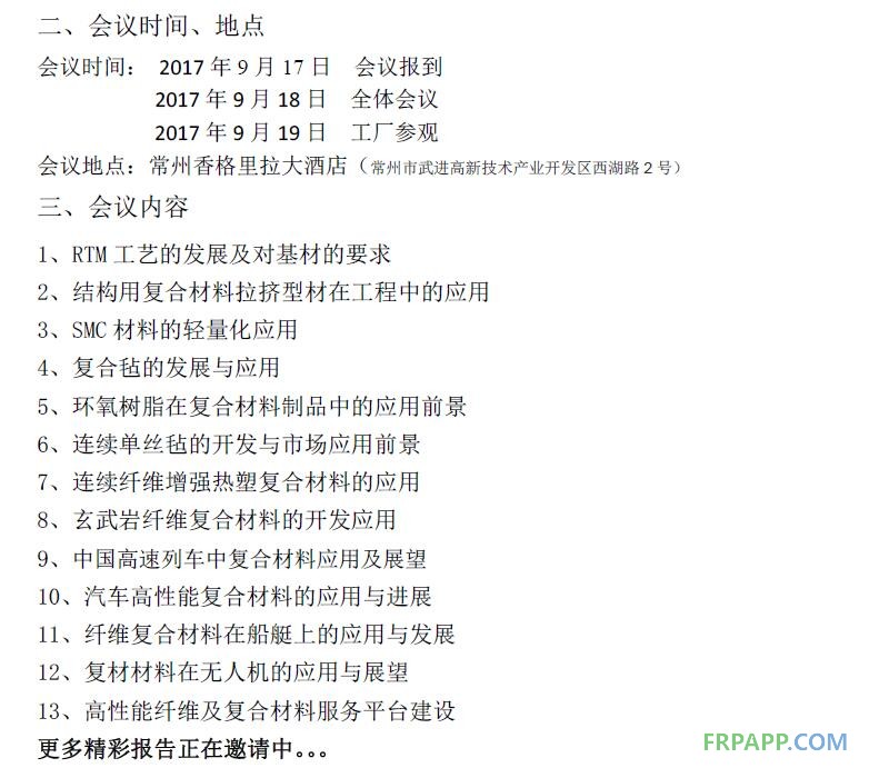 江蘇省是我國纖維復(fù)合材料產(chǎn)業(yè)的大省,為充分落實《規(guī)劃》內(nèi)容,提升我國復(fù)合材料的應(yīng)用水平,促進(jìn)江蘇省纖維復(fù)合材料全產(chǎn)業(yè)鏈的貫通發(fā)展,更好地推動江蘇省及我國復(fù)合材料行業(yè)的技術(shù)進(jìn)步和產(chǎn)業(yè)發(fā)展,江蘇省硅酸鹽學(xué)會玻纖玻鋼專委會、江蘇省碳纖維及復(fù)合材料檢測服務(wù)平臺、中國硅酸鹽學(xué)會玻纖分會茲定于2017 年9 月17 日~19 日在江蘇.常州香格里拉大酒店召開“復(fù)合材料產(chǎn)業(yè)鏈發(fā)展研討會”暨江蘇省硅酸鹽學(xué)會玻纖玻鋼專委會2017 年工作會議。會議將為行業(yè)同仁和專家學(xué)者提供增進(jìn)共識、深化合作、相互交流的機(jī)會,以促進(jìn)復(fù)合材料上下游行業(yè)的合作、發(fā)展與共贏。熱烈歡迎江蘇省及全國復(fù)合材料產(chǎn)業(yè)鏈的相關(guān)單位積極參加。