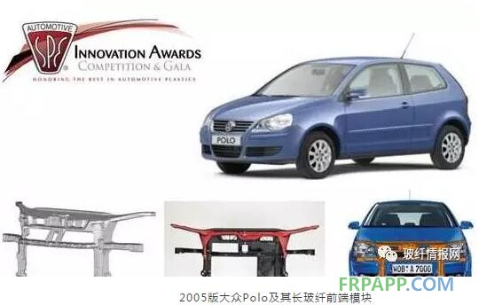 2005版大眾Polo采用了第一款膠黏劑黏合的PP長玻纖制備的前端模塊,減重25%,減省的成本超過10%。