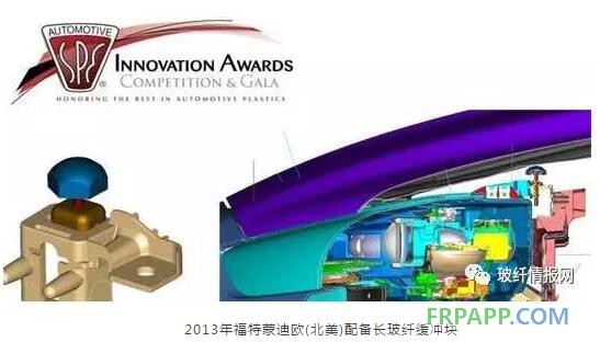 2013年福特蒙迪歐(北美)配備的麥格納制作的長玻纖PP緩沖塊,將2個金屬部件集成在一個塑料支架上,也可以減少頭部加速沖擊力,來符合行人保護要求。