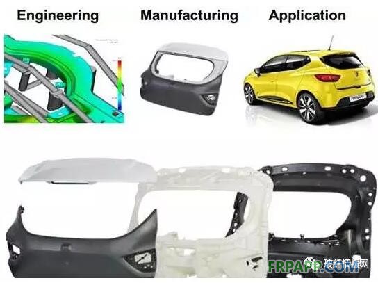 2013雷諾Clio尾門裝配設計中內飾板采用耐刮擦/耐磨15%滑石粉增強TPO,而結構內板采用的ENLITETM40%長玻纖增強PP,噴漆的外飾板采用的低線性膨脹系數30%滑石粉增強TPO。三層板都是PP材料,可以回收利用,提高產品價值,同時這是第一款全塑尾門設計并生產的創新應用,包括部件和功能化集成,形式多樣化并減重10%以上。