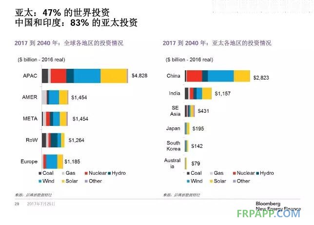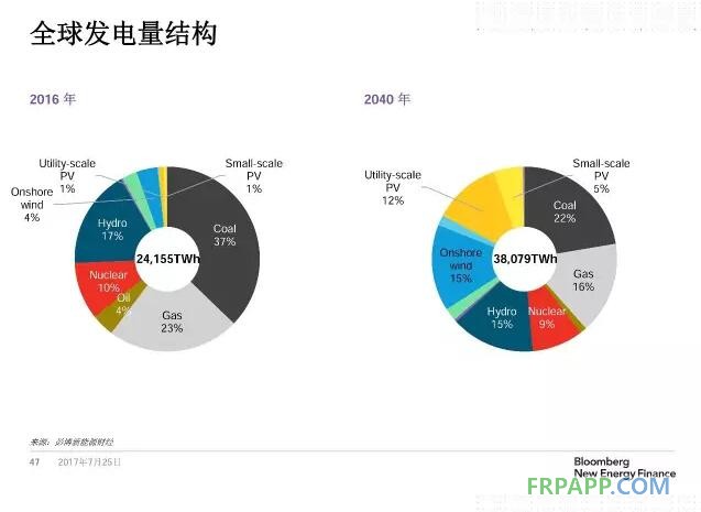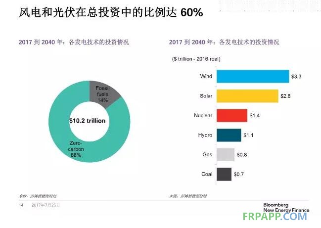 2017-2040年,全球風電和光伏在總投資中的比例達60%,風電將成為最重要的新能源投資。