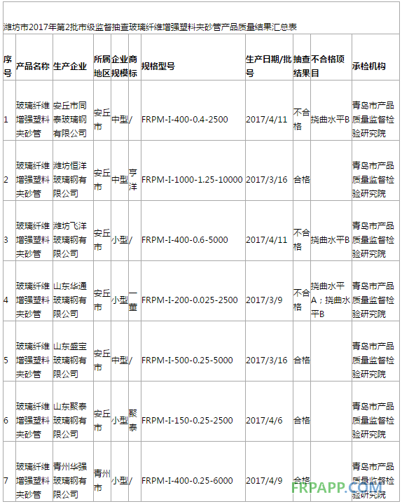 玻璃纖維增強塑料夾砂管產品質量市級監督抽查結果,3批次產品不符合相關
