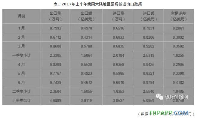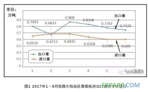 1、2017年上半年我國大陸地區覆銅板進出口數據