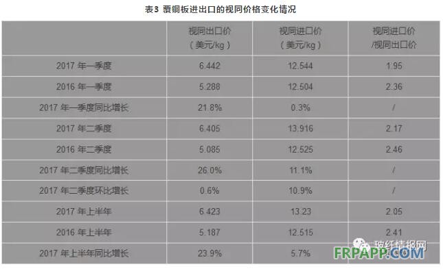 3、2017年上半年覆銅板進出口的視同價格變化出現新情況