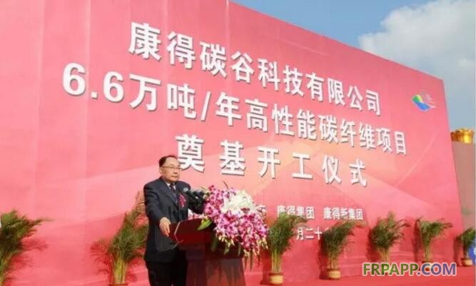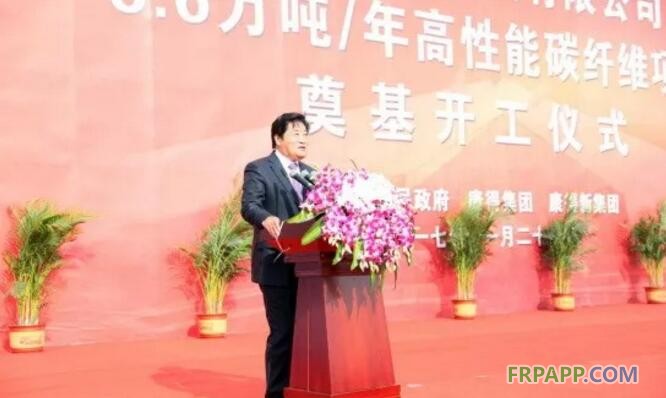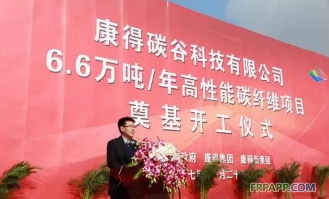 中國石油和化學工業聯合會常務副會長傅向升從事化工產業近35年,在致辭中,他表示,如今碳纖維需求量得到快速增長,出現了日本、美國為代表的碳纖維發達國家,全球市場被這兩國所壟斷。去年中國進口碳纖維2781噸,其中從日本、韓國、中國臺灣的進口量就占到73%,進口量比上年增長57.5%,進口用匯增長38.4%。在這樣一個時刻,康得碳谷項目舉行奠基儀式,這是新材料的重大創新產業項目,將為中國成為碳纖維強國做出重要貢獻。