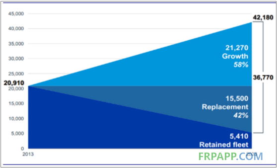 2016 年航空航天領域對碳纖維的需求量達到 1.76 萬噸,其中商用飛機的需求占 70%,是目前航空工業中對碳纖維需求最大的市場。根據波音的預測,2014-2033全球將新增36770架客機,其中 42%來自于已有機型的更換機型,58%來自于亞洲、北美和歐洲等地區的新增需求。2013-2020 年期間全球對民用客機需求量的年復合增長率為 3.57%。