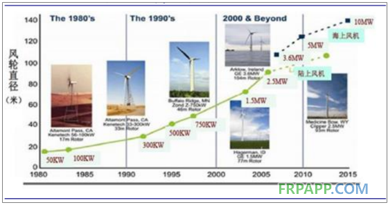 風力作為清潔能源的代表之一,先于光伏發電受到全球各國的青睞。自 20 世紀 80 年代商業化發展以來,經歷了全球化的高速增長。大風機每千瓦電量的總生產成本,普遍會隨著風機的增大而降低。而在備受矚目的海上風電市場,也要使用功率更大的風機和更長的葉片,用來降低成本、提高效率,因此全球風機大型化的趨勢日益明顯。