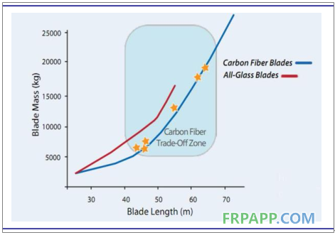 風機葉片長度超過 40m 后采用碳纖維更為經濟