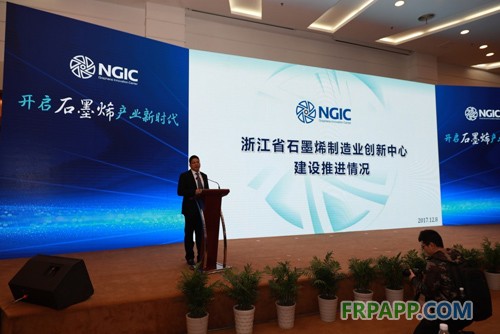 浙江省石墨烯制造業(yè)創(chuàng)新中心負(fù)責(zé)人劉兆平介紹創(chuàng)新中心建設(shè)推進(jìn)情況