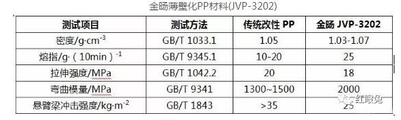 金旸JVP-3202薄壁化PP材料,該款材料可滿足2.2mm保險杠機械性能要求,相比2.8mm壁厚保險杠可實現21%的減重效果。