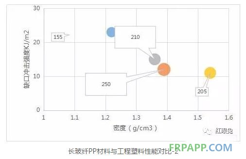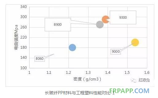 長玻纖增強PP材料(LGF-PP)的玻纖長度一般在3mm以上,與相似的短纖維(纖維長度約小于1mm)增強PP材料相比,無論在強度、抗沖擊性能、能量的吸收率等方面都得到了明顯提升,具有比強度高、比模量高、抗沖擊性強、尺寸穩定和翹曲度低等顯著特點。同時,相比短玻纖增強PA材料,LGF-PP不吸水且密度更低、具有更高的性價比,因此PP-LGF也逐步取代部分短玻纖增強工程塑料而應用于汽車零部件上。