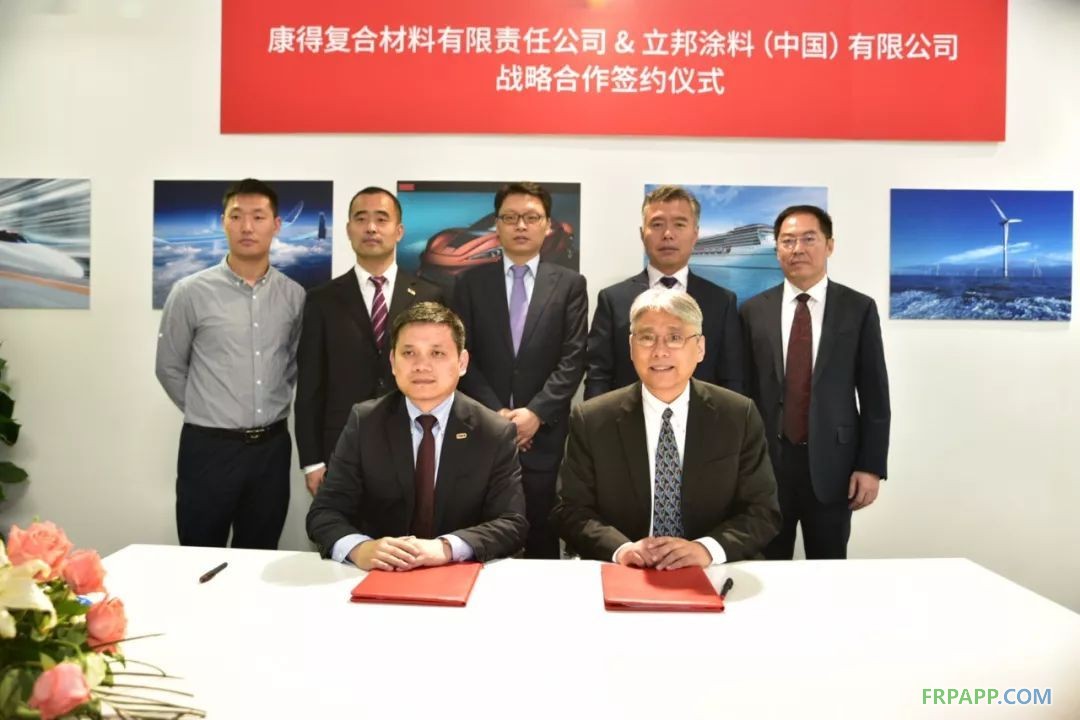 4月27日上午, 康得復(fù)材與立邦涂料舉行戰(zhàn)略合作簽約儀式,康得復(fù)合材料公司副總裁、CTO何鵬博士(前排左),立邦涂料母公司新加坡立時(shí)集團(tuán)CTO洪江博士(前排右),代表雙方企業(yè)出席簽約儀式。