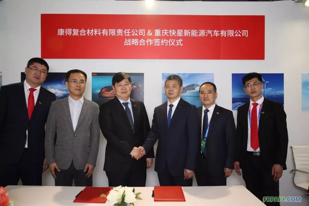 康得復(fù)材總裁謝富原、重慶快星常務(wù)副總唐城非代表雙方簽署戰(zhàn)略合作協(xié)議