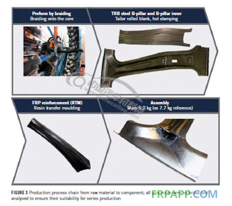 在經歷概念設計和仿真模擬之后,需要進行產品試制。這里主要涉及鋼制件和FRP的生產。鋼制部分采用Mubea的TRB板,FRP部分考慮到大規模生產要求,采用自動編織FRP預制件。