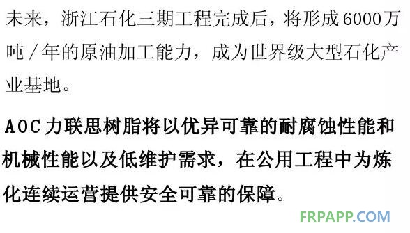 核心提示:AOC力聯思樹脂應用于浙石化4000萬噸/年煉化一體化項目