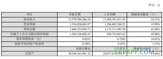 據(jù)了解,報(bào)告期內(nèi),公司實(shí)現(xiàn)營(yíng)業(yè)收入1,357,970.93萬(wàn)元,較上年同期增長(zhǎng)18.51%;實(shí)現(xiàn)利潤(rùn)總額166,633.21萬(wàn)元,較上年同期增長(zhǎng)42.00%;實(shí)現(xiàn)歸屬于上市公司股東的凈利潤(rùn)138,532.61萬(wàn)元,較上年同期增長(zhǎng)49.00%。
