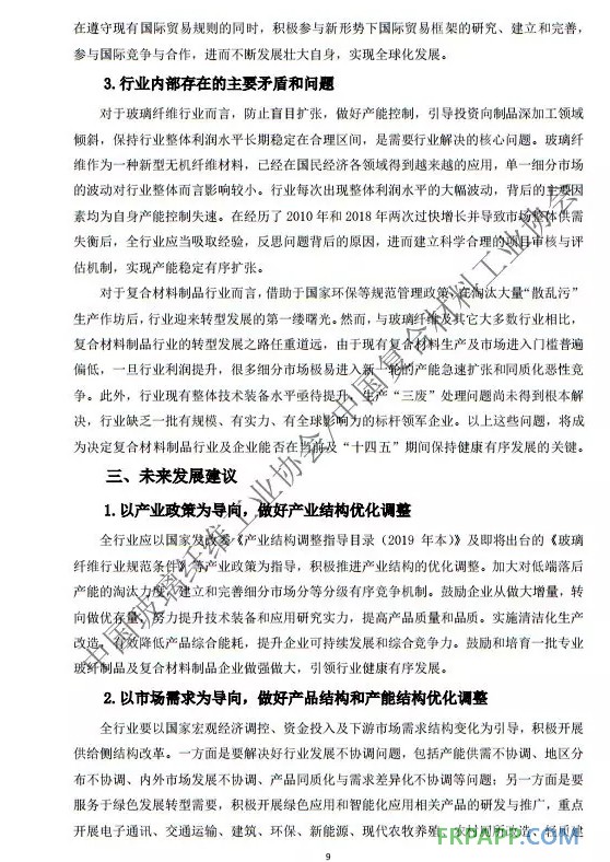 核心提示:導讀:據協會初步統計,2019年全行業玻璃纖維紗總產量達到527萬噸,同比增長12.61%。復合材料制品總產量445萬噸,同比增長3.5%。