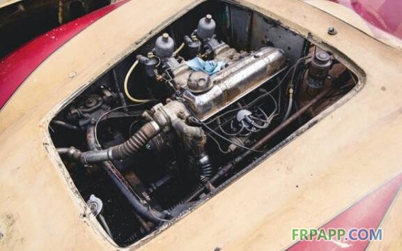這款Devin Triumph,動力上搭載Triumph直列四缸發動機,SU化油器和側排氣。后備箱里有一個RCI燃料電池和一個全尺寸的備用電池,這臺車外觀依然保持原有的樣子,近期,前臉進行了一些小的修復,后續外觀將會更為完整。而且車上還貼著1959年Bonneville(博納維爾)速度試驗安全檢查標簽。