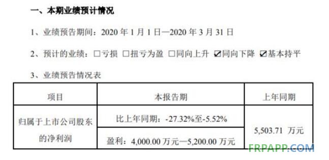 近日,長海股份(300196)發布2020年一季度業績預告:2020年1月1日—2020年3月31日預計盈利4,000.00萬元~5,200.00萬元,上年同期盈利5,503.71萬元,同比下降5.52%~27.32%。