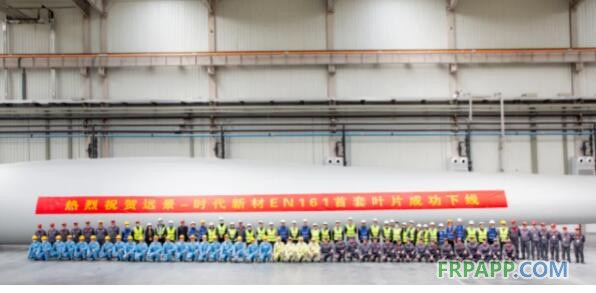 材料科技股份有限公司共同研發的EN161首套拉擠碳梁葉片在江蘇射陽成功下線。